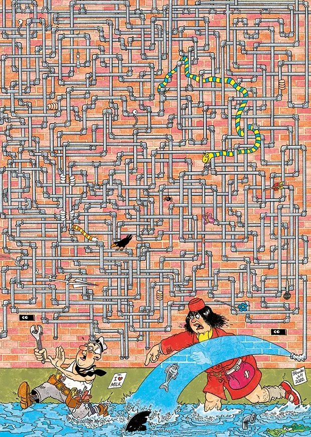 I Jan van Haasterens expertserie får vi följa 1-2 kända karaktärer ur Van Haasteren-familjen på egna små knepiga äventyr. Varje pussel är extra klurigt med många snarlika bitar. Den här gången tycks det vara en läcka någon stans, men vart?!