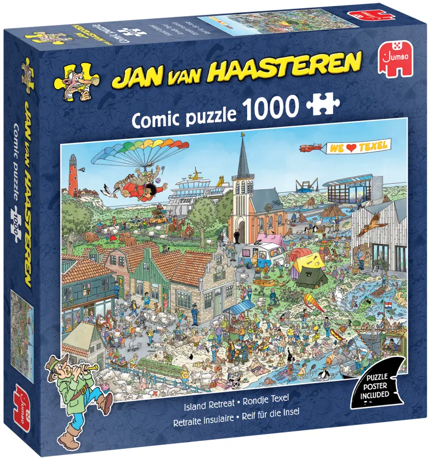 Idag är Familjen Jan Van Haasteren på besök på den livliga ön Texel i norra delen av Nederländerna. Här flockas turisterna på stranden och ön kan erbjuda både pittoresk landsbygd med ett rikt djurliv (kanske mest av alt får) och moderna byggnader med museum om det marina livet.