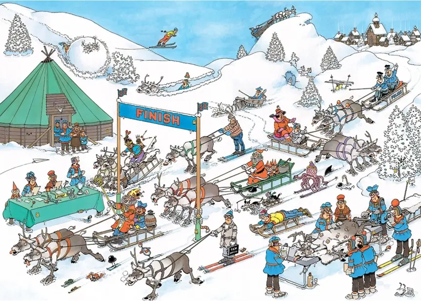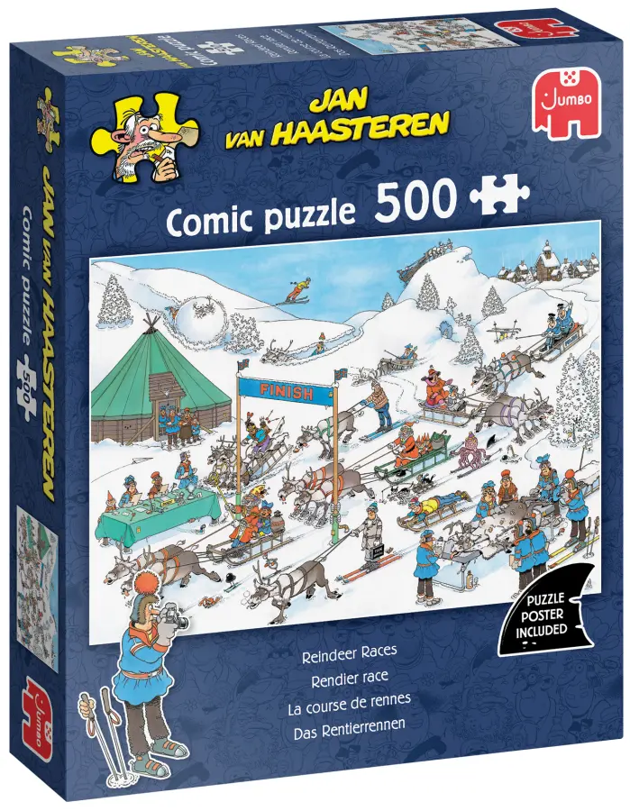 Familjen Jan van Haasteren deltar i det fartfulla ren-racet. Vem kommer att bli först över mållinjen? Blir det jultomten med sin erfarenhet, eller är det någon annan som tar hem trofén? Jan van Haasteren har sin egen strategi för att vinna!