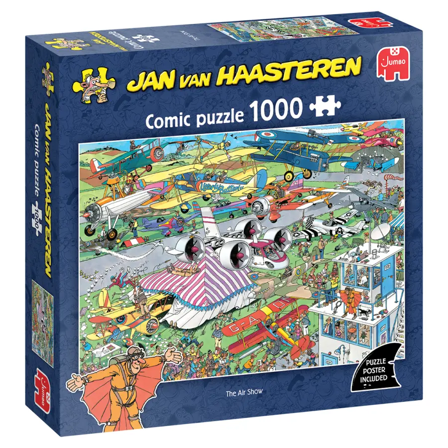 Ett färgglatt humoristiskt myller med pusselglädje i varje pusselbit, illustrerat av serietecknarnas och pusselmotivens främste man Jan Van Haasteren.