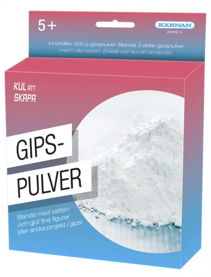 Innehåller: 500g gipspulver samt instruktioner (formar att gjuta i köps separat och ingår ej).
