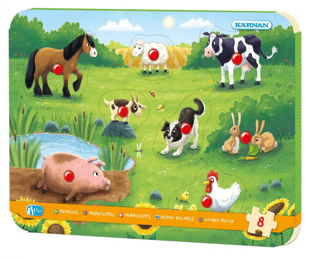 Ett härligt knoppussel för de yngsta med fina djurbilder. Perfekt för att öva tal och finmotorik tillsammans!