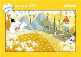 Pussel med 100 bitar och motiv från den älskade serien med Mumintrollen. Bitarna är större och mer greppvänliga än vanliga pusselbitar, tillverkare av pusslet är svenska Egmont Kärnan.