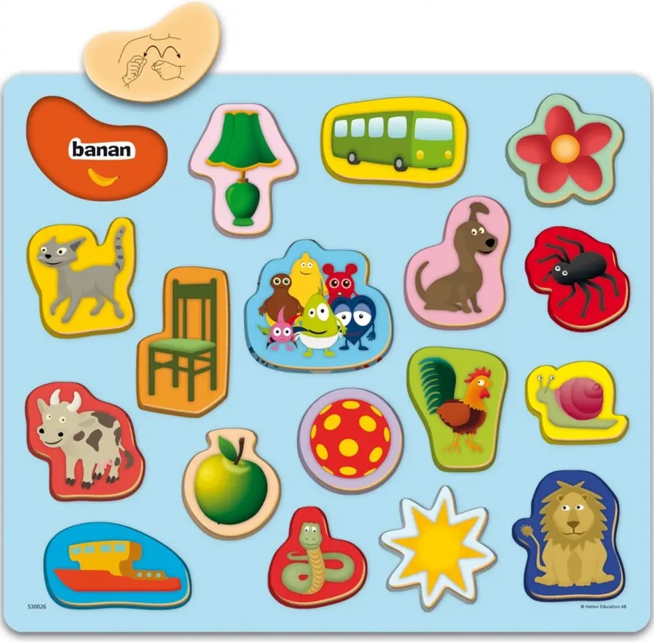 Träpussel med ord, bilder och teckenspråk!
