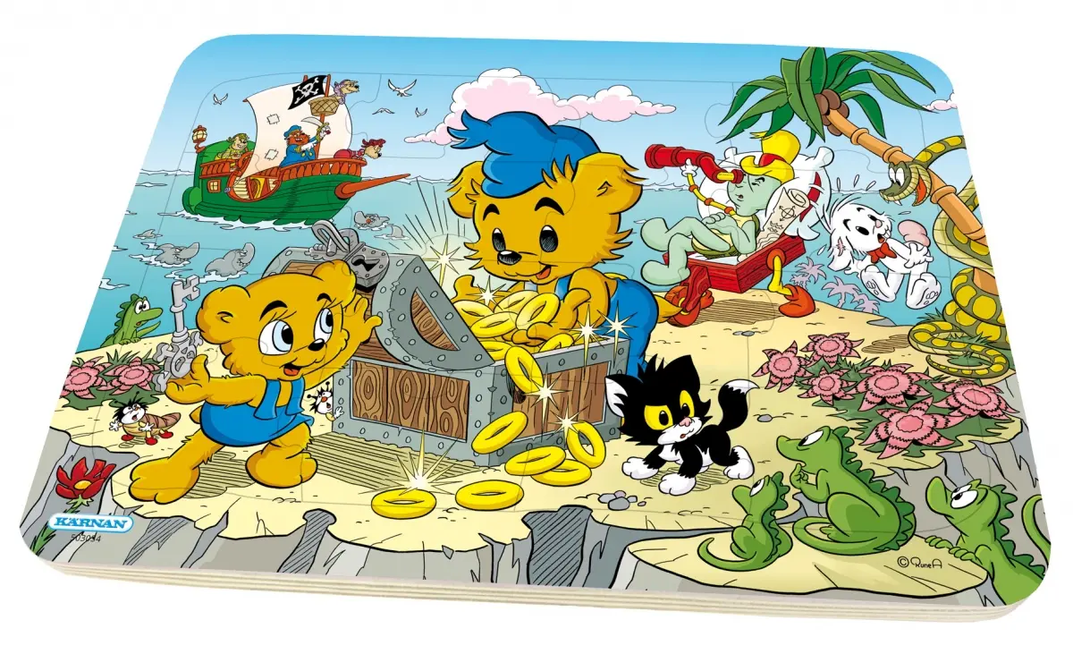 Bamse och hans vänner är ute på skattjakt, de har just gått i land på en ö och har faktiskt lyckats hitta en hel skattkista med guldringar! Men ska sjörövarna hinna ikapp dem och ta ifrån dem deras nyvunna rikedomar?