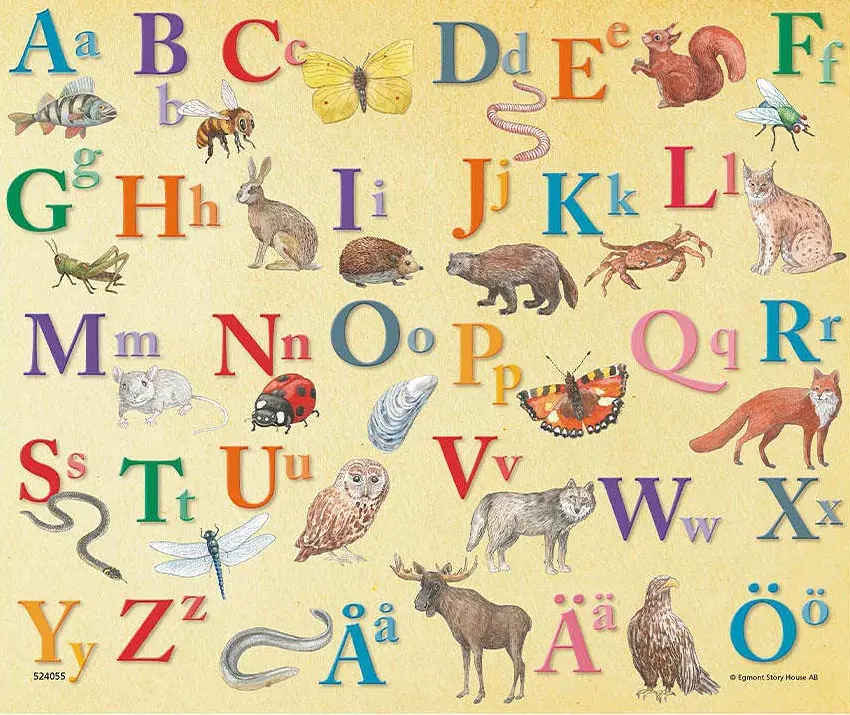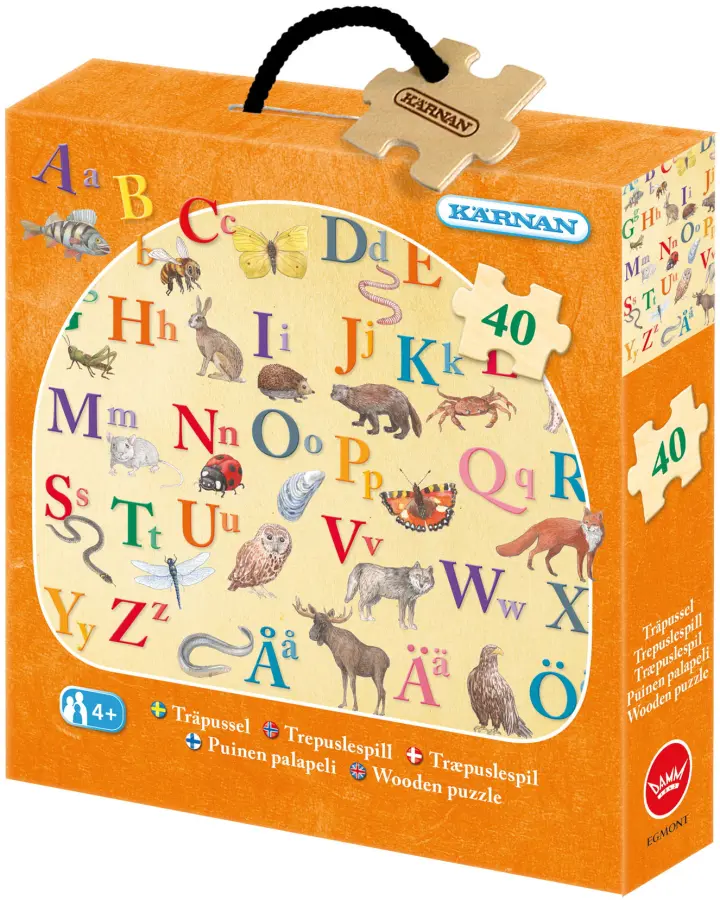 Ett fin ABC-pussel med djurbilder som symboliserar varje bokstav. Pusslet är i trä med greppvänliga bitar för barn som vill öva bokstäver på ett roligt sätt.