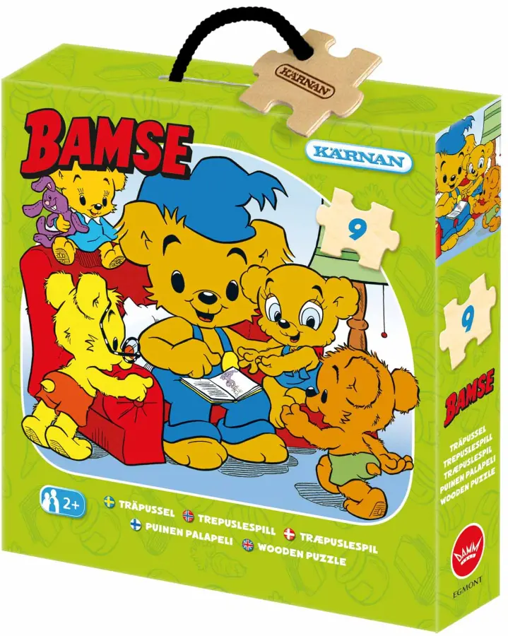 Bamse har slagit sig ned i en stor röd fåtölj och hans barn samlas omkring honom, äntligen är det dags för en sagostund!