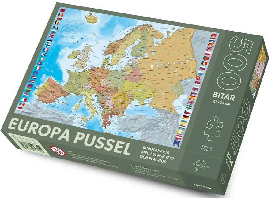 Europapussel i 500 bitar, ett roligt sätt att umgås och samtidigt lära mer om Europas geografi.