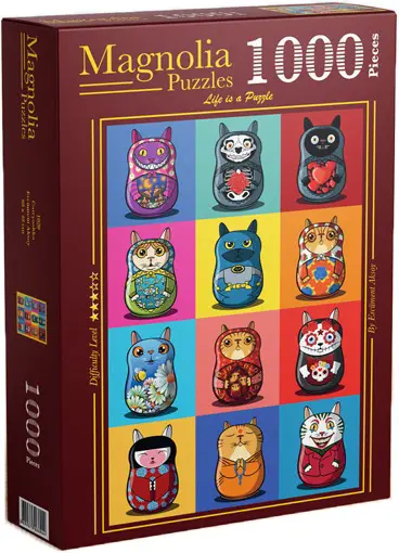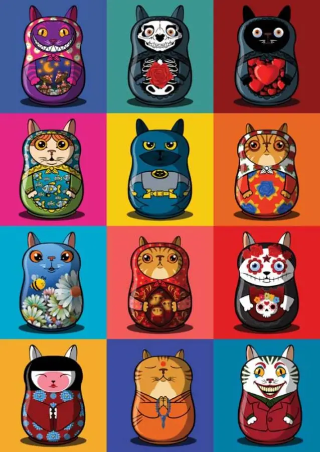 Pusselmotiv av den klassiska ryska leksaken med en katt-twist.