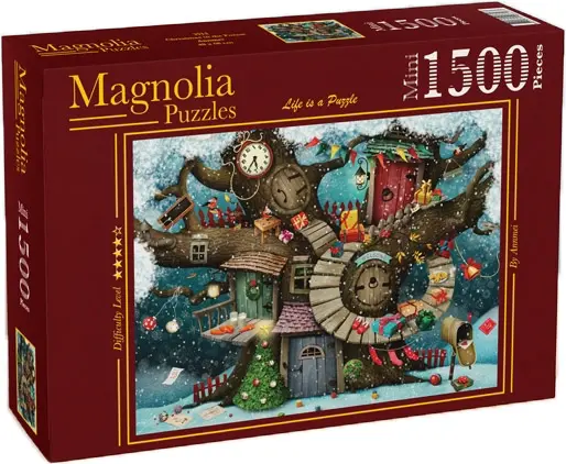 Det är en mysig och festlig atmosfär i skogen när julen närmar sig. Ett pusselmotiv där du ständigt hittar roliga små detaljer som gömmer sig i bilden.