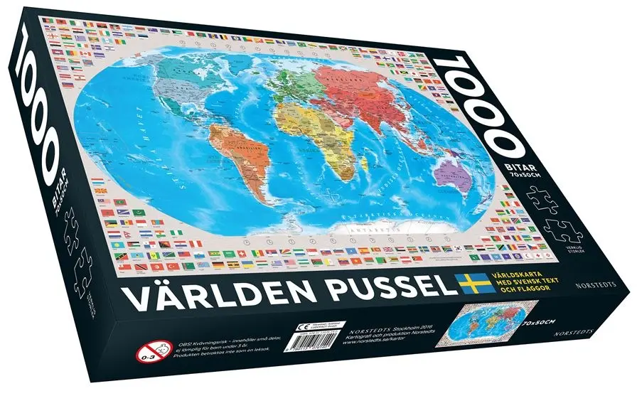 Norstedts: Världen Pussel - Världskarta med svensk text och flaggor (1000)