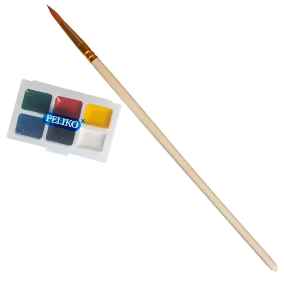 Innehåll: ett pussel, 6 vattenfärger (1ml) och en pensel.