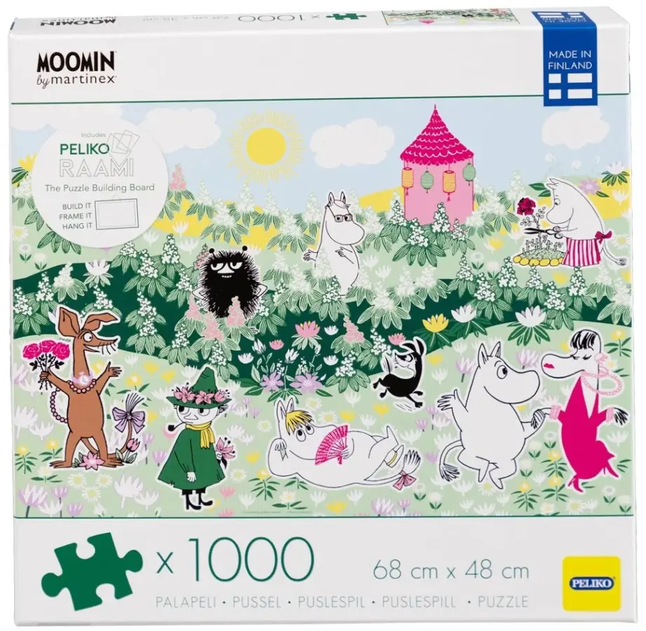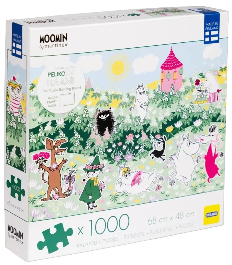 I Tove Janssons Mumindalen står trädgården i full blom. Mumin har samlat vänner och familj för att njuta av den vackra sommardagen. Ett färgsprakande motiv med kända karaktärer från sagorna om Mumintrollen.