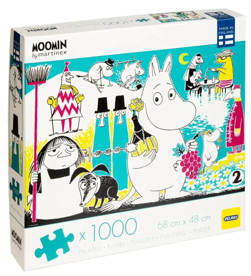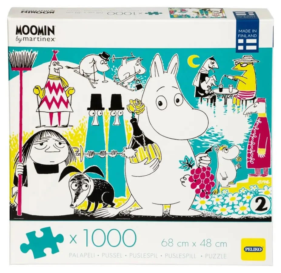 De fina och detaljrika motiven till pusselserien Mumin Comic Book Cover kommer från omslagsbilderna på Tove Janssons tecknade serieböcker. Det här motivet kommer från serietidning nr 2.