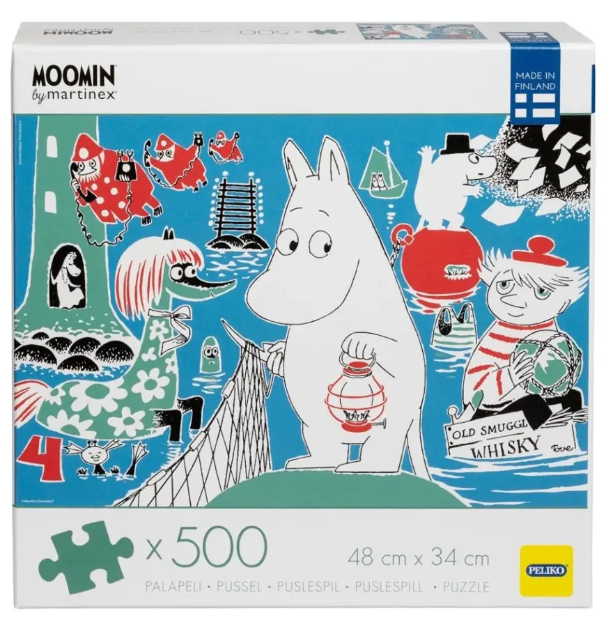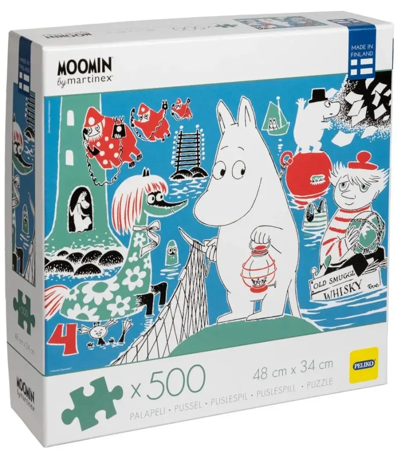 De fina och detaljrika motiven till pusselserien Mumin Comic Book Cover kommer från omslagsbilderna på Tove Janssons tecknade serieböcker. Det här motivet kommer från serietidning nr 4.