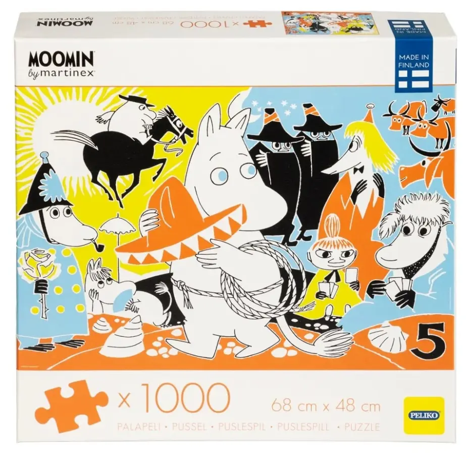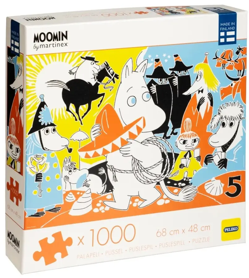 De fina och detaljrika motiven till pusselserien Mumin Comic Book Cover kommer från omslagsbilderna på Tove Janssons tecknade serieböcker. Det här motivet kommer från serietidning nr 5.