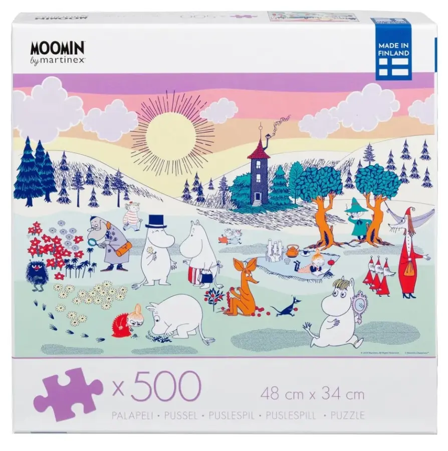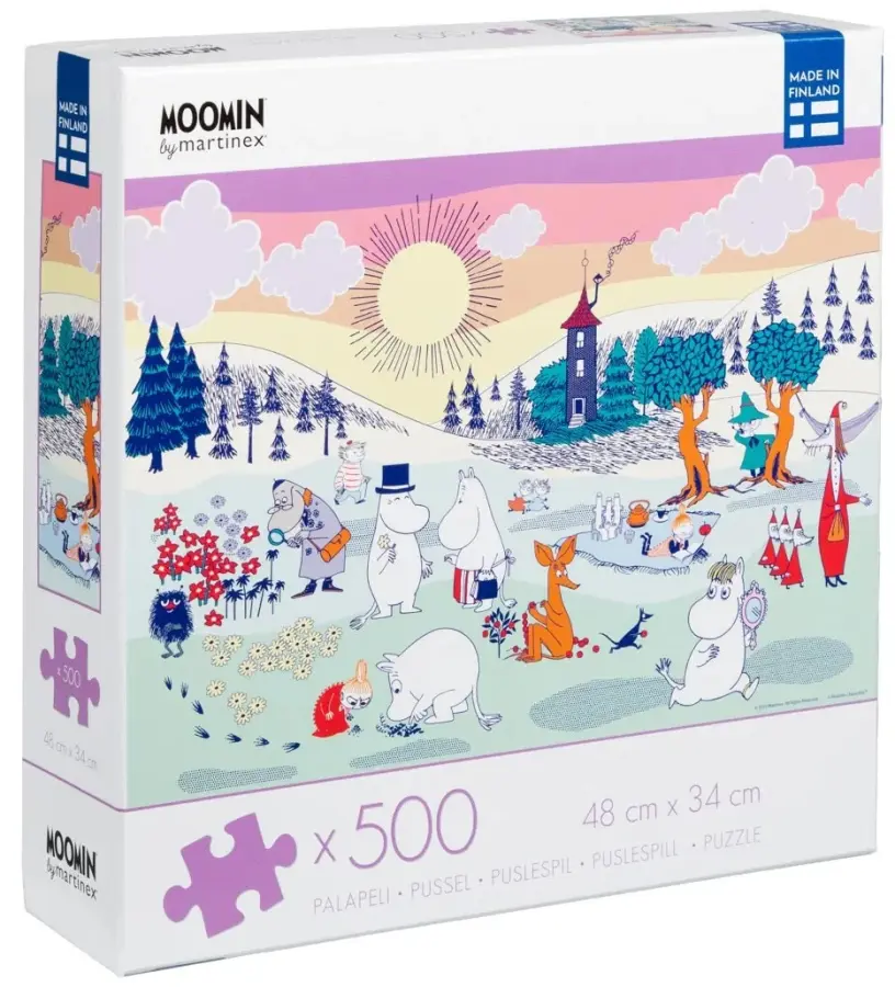 Det är en strålande sommardag i Mumindalen och alla har samlats för att njuta av naturen tillsammans. Känner du igen alla karaktärerna på bilden ur Tove Janssons Muminvärld?