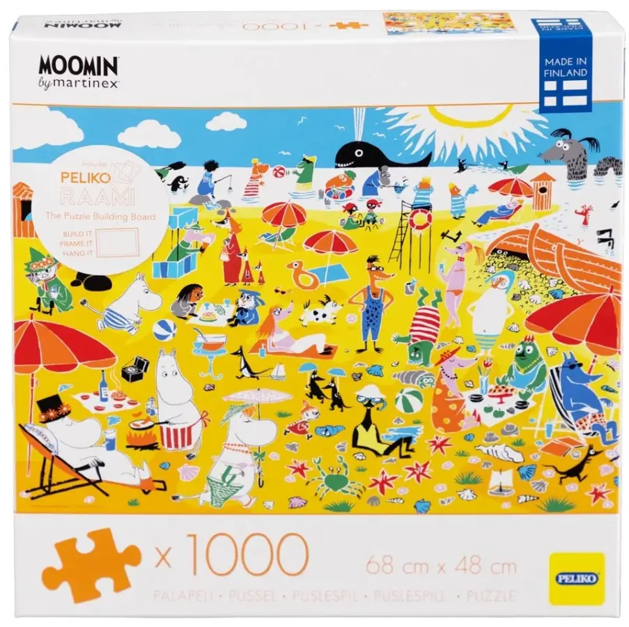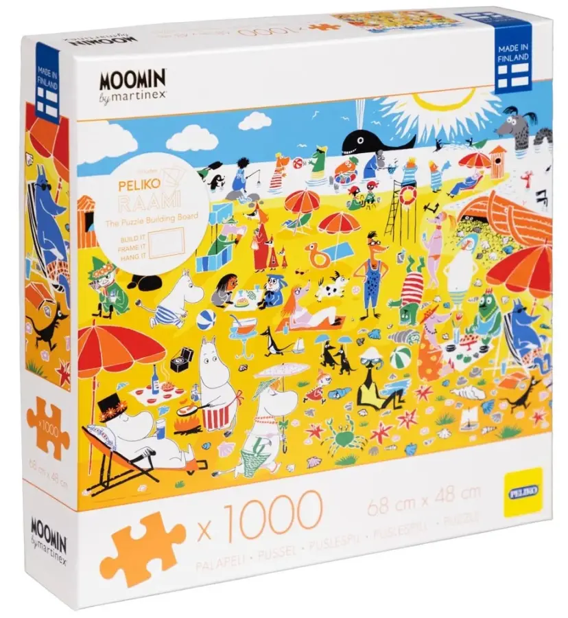 Välkommen till Mumintrollens soliga stranddag på den franska Rivieran! Tove Janssons älskade Mumin-karaktärer är på Rivieran och har en härlig semester vid havet. Dagen erbjuder sol, picknick, grillning och bad och det kanske viktigaste av allt, att få uppleva allt detta tillsammans med vänner och familj! Ett härligt Muminpussel i blå och orangea toner och massor av detaljer.