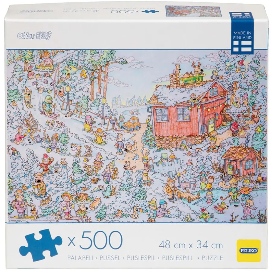 Ett tecknat pusselmotiv med vintertema, och mängder av roliga detaljer att upptäcka när du lägger bitarna på plats! Motivet är skapat av Oskar Eklöf, illustratör och bildkonstnär från Borgå i Finland.