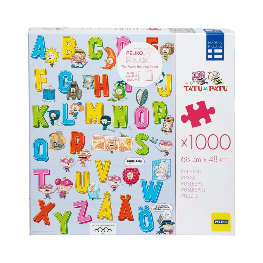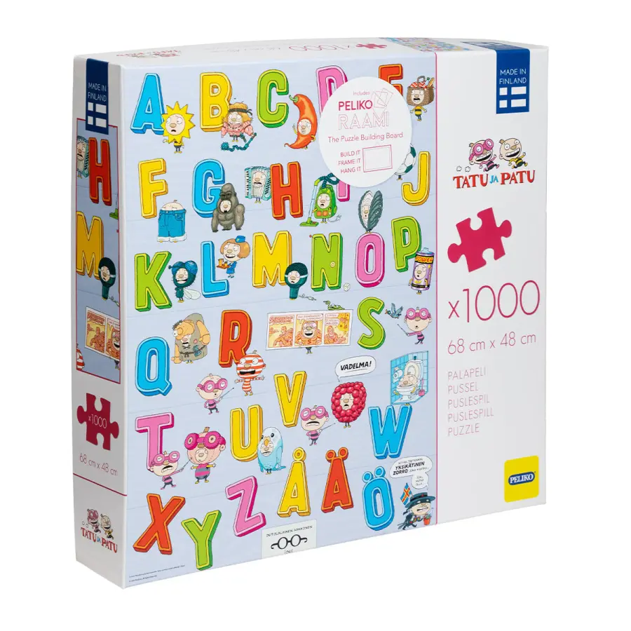 Tatu och Patu är en finsk bokserie som heter Sixten och Blixten på svenska. De är två bröder som ursprungligen skapades av författaren och illustratören Aino Havukainen och Sami Toivonen. I det här pusselmotivet tar bröderna med oss på en upptäcktsfärd genom alfabetet från A till Ö.