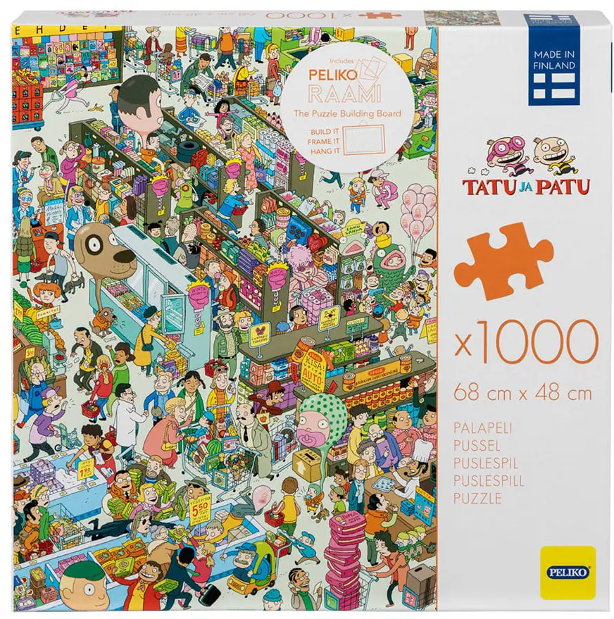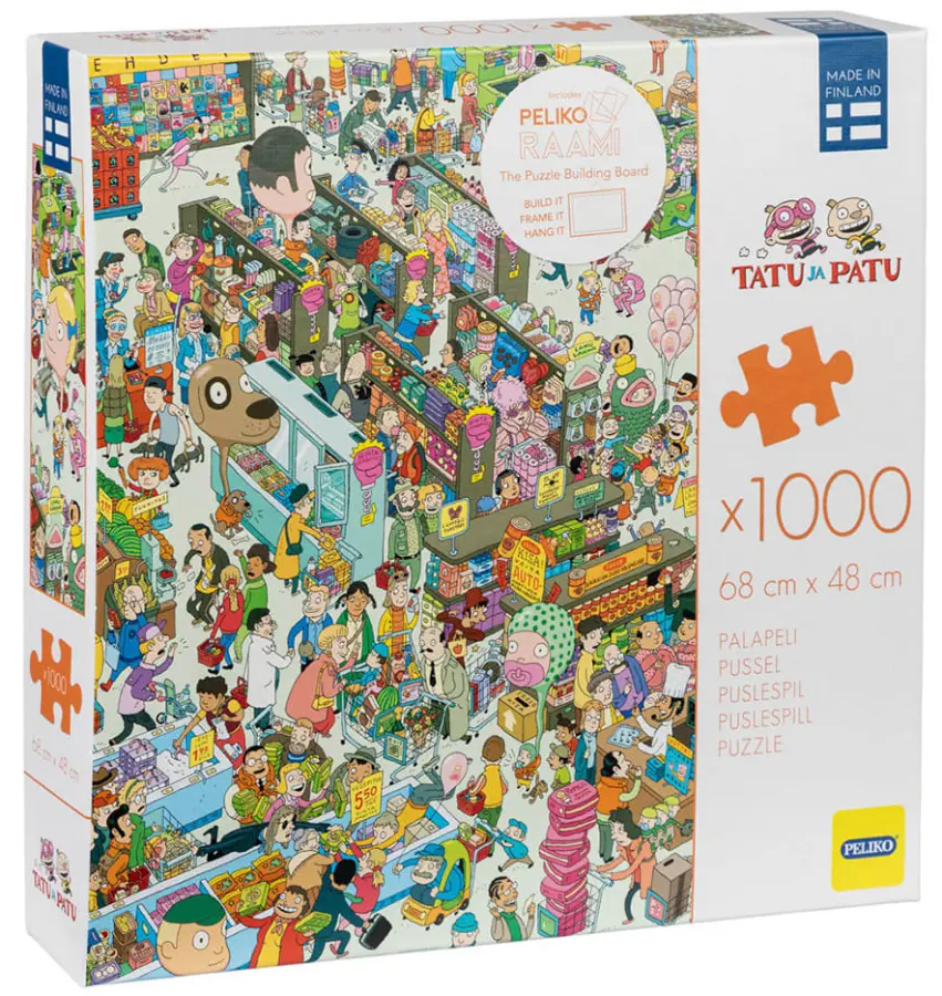 I folkvimlet i mataffären tappar man lätt bort en vän, en bebis eller en hund. Lyckligtvis är det lätt att hitta dem med hjälp av en mänsklig flytväst. Ett humormotiv fullt av detaljer med de tecknade karaktärerna Sixten och Blixten.