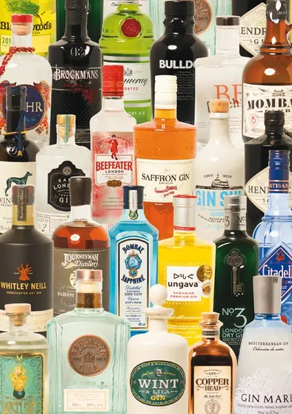 Ett pussel för den sanna gin-fantasten. Ett härligt kollage med en imponerande samling gin.