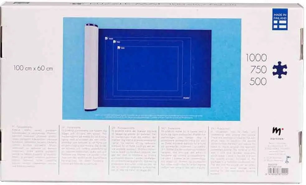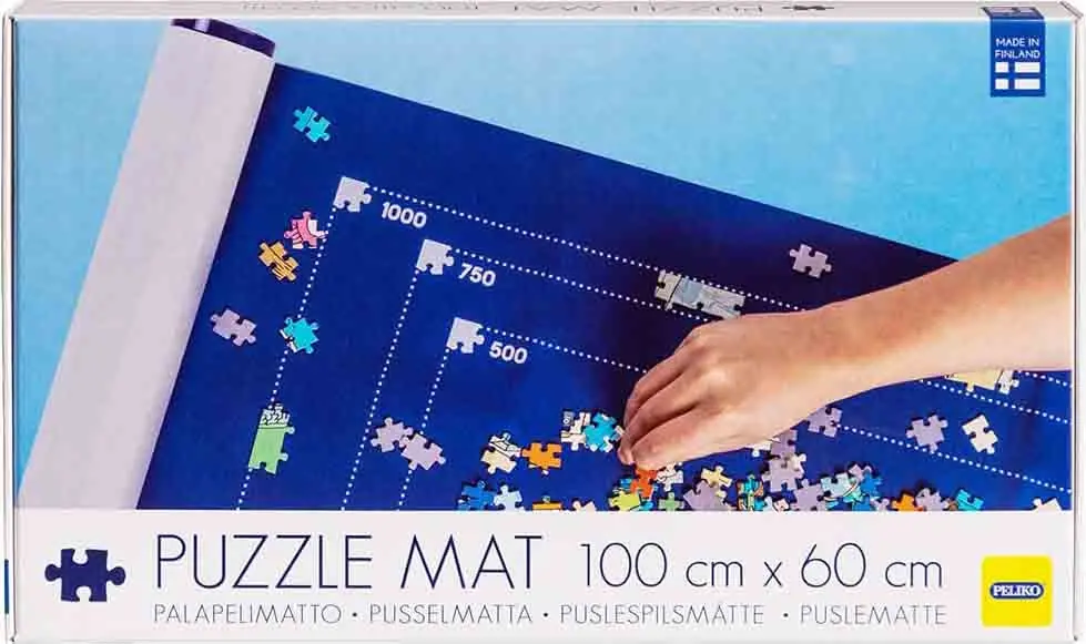 Materialet är mjukt och flexibelt neopren, och med markeringar för 500, 750 eller 1000 bitar som hjälper dig att börja pussla inom rätt område.