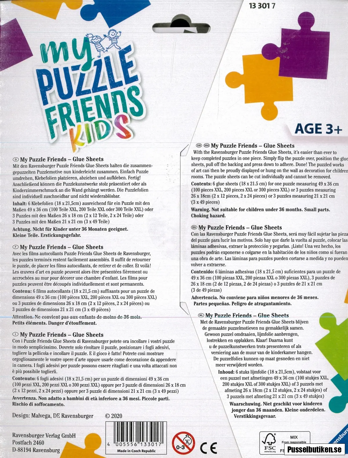 Ark med lim på ena sidan för att limma ditt färdiga barnpussel på ett enkelt och smidigt sätt!