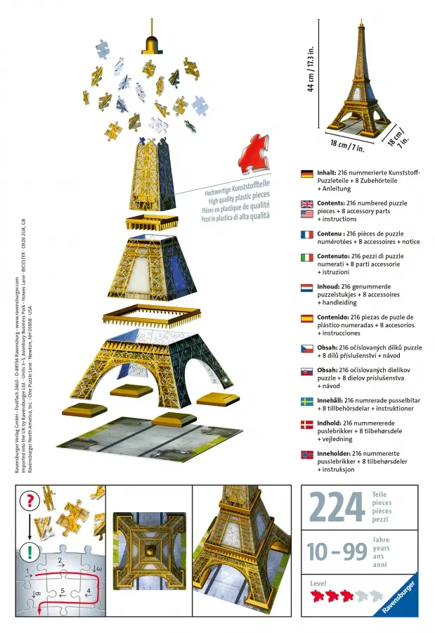 Innehåller 216 numrerade pusselbitar, 8 accessoarbitar & instruktioner.