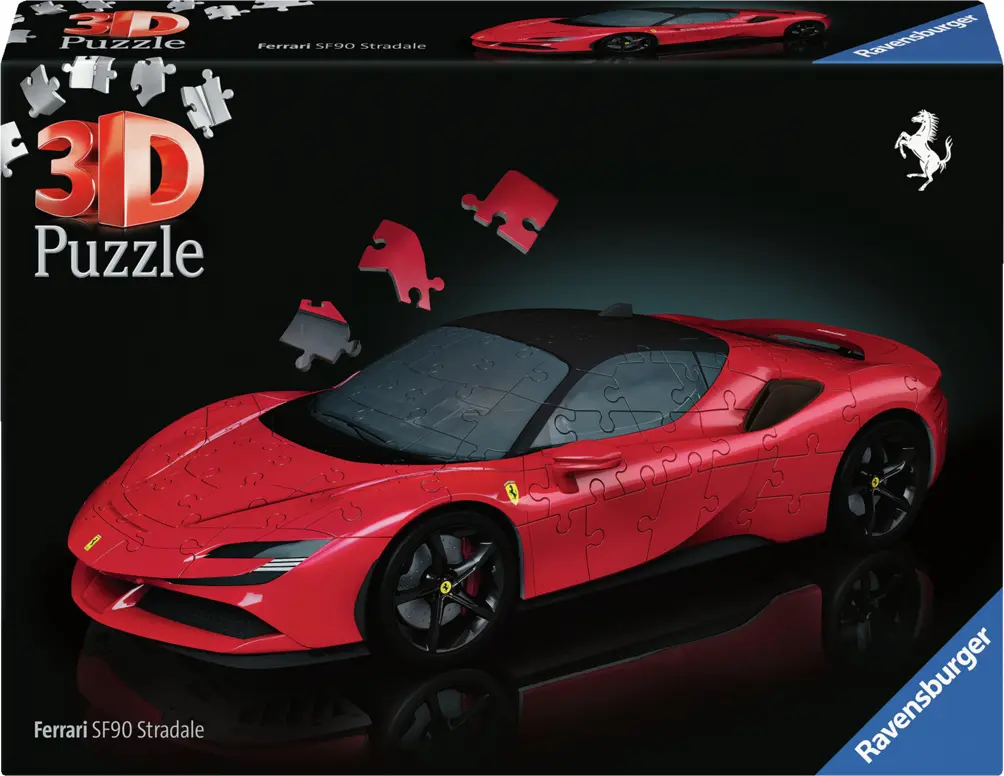 Den första Ferrari någonsin med hybriddrivteknik som ett fantastiskt Ravensburger 3D-pussel: Denna SF90 Stradale är det perfekta tidsfördrivet för bilentusiaster. De verkligt tredimensionella pusselbitarna skapar en detaljerad kopia av det aerodynamiska chassit. Numreringen på baksidan av bitarna gör monteringsupplevelsen både avkopplande och fascinerande för vuxna och barn från 8 år och uppåt. Inkl. monteringsanvisningar och intressant bakgrundsinformation om varumärket Ferrari och SF90.