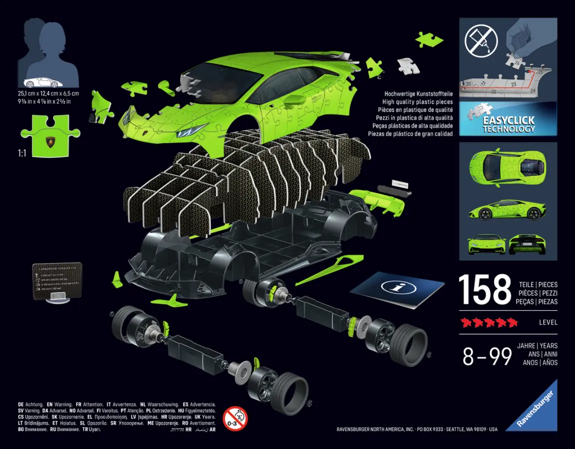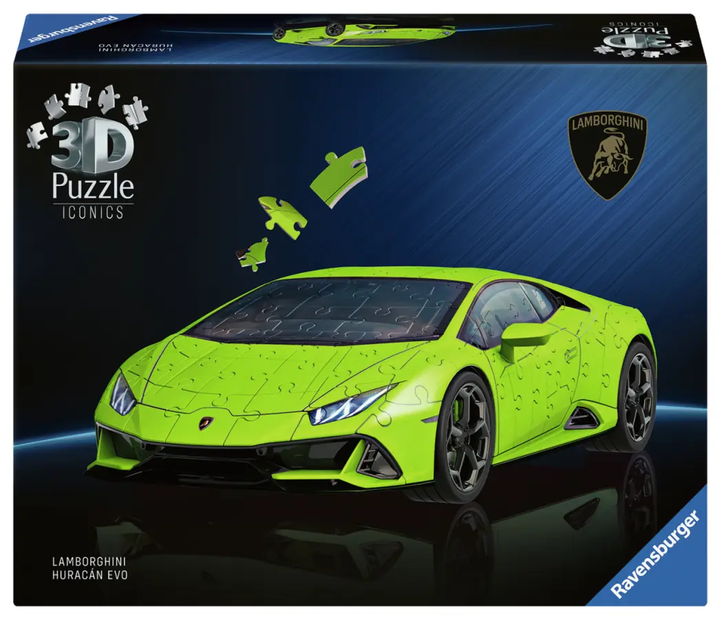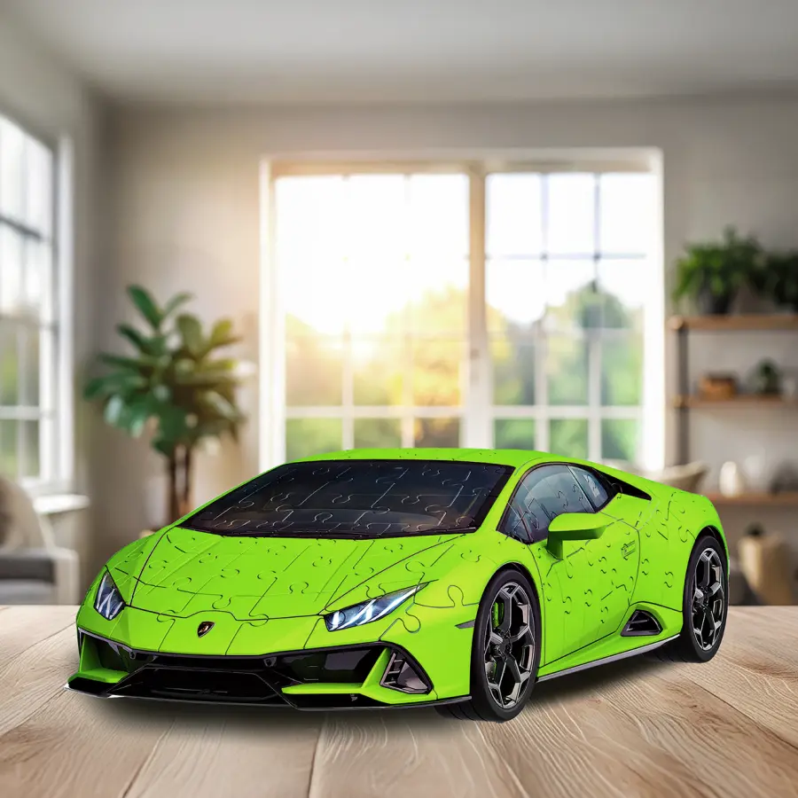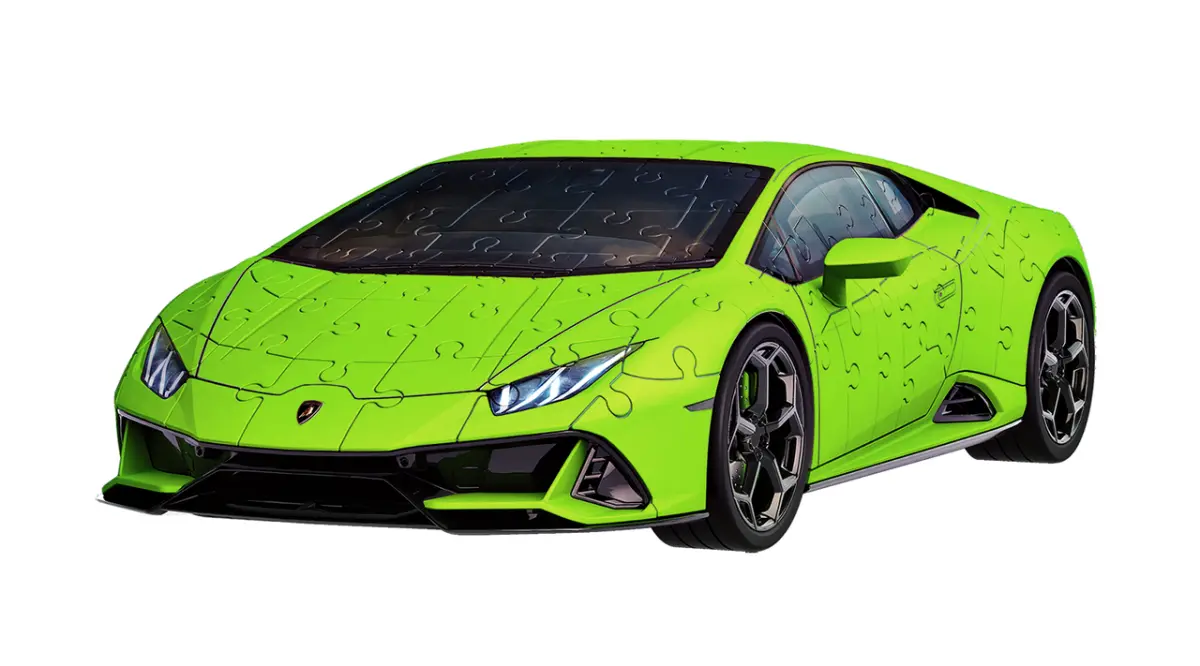 Den ikoniska Lamborghini Huracán EVO som 3D-pusselmodell med realistisk design och i en pigg grön färg!