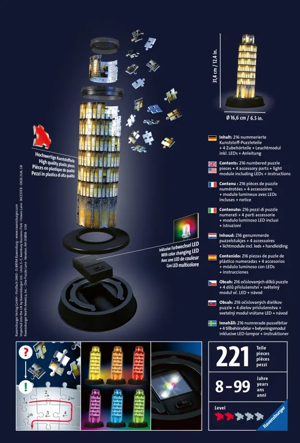 Ravensburger: 3D - Leaning Tower of Pisa, Night Edition (221)