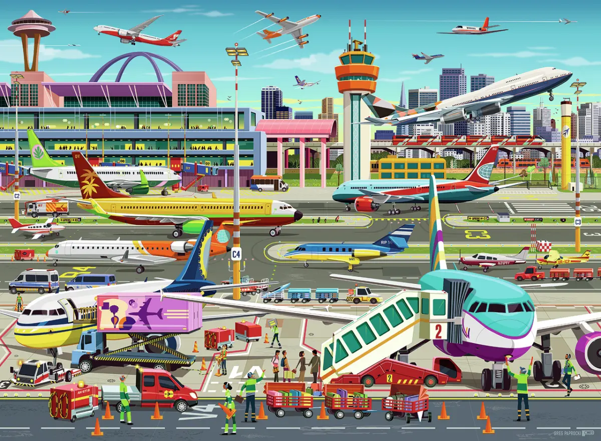Ett spännande pusselmotiv för alla som har ett flygplansintresse eller är sugen på att resa, och ett perfekt pussel om man vill prata med barn om hur det går till när man ska flyga någonstans!