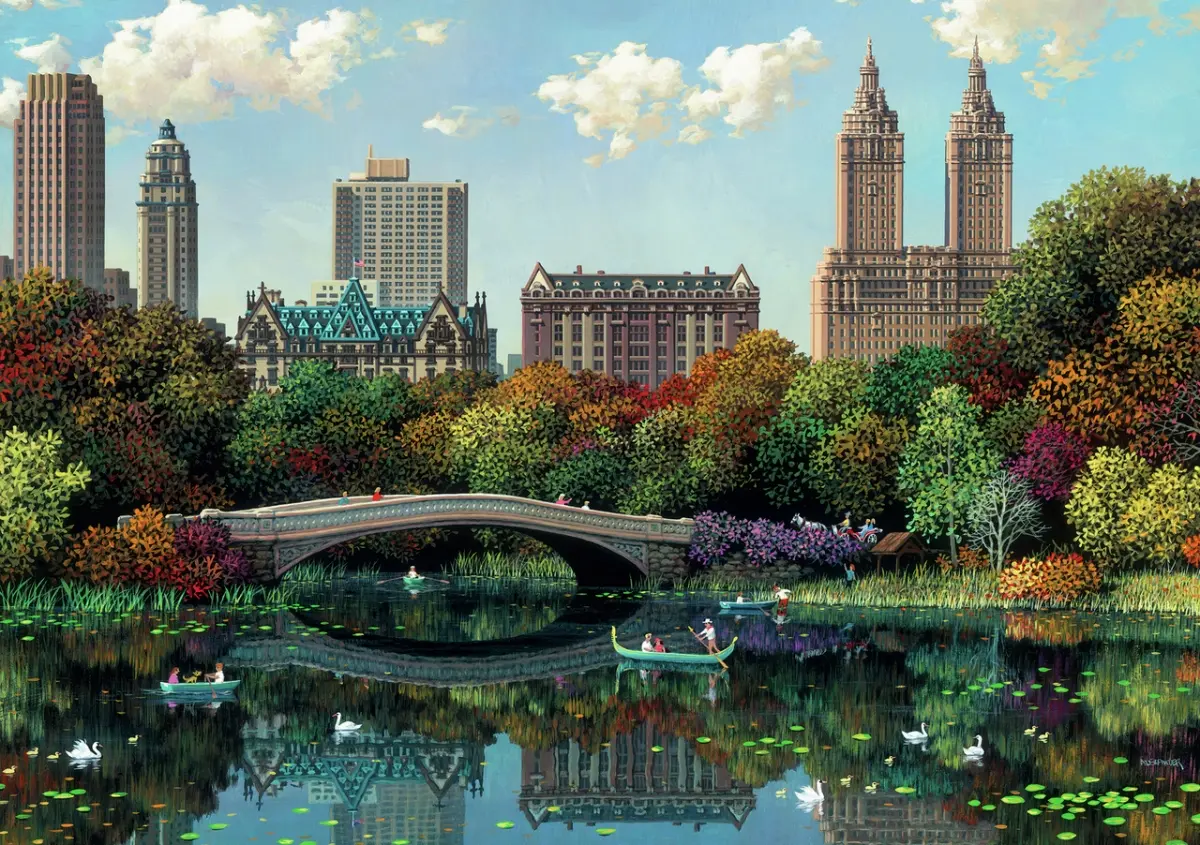 Vy över central Park i New York, skapad av illustratören Alexander Chen.