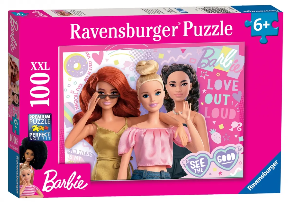 Tre Barbiedockor står redo för dagens bild, i bakgrunden syns en mönstrad bakgrund i pastellfärger och såklart i favoritfärgen rosa!