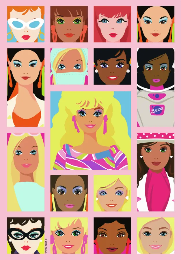 I samarbete med Mattel, företaget bakom succédockan Barbie, har Ravensburger skapat detta färgstarka kollage med porträtt av kända Barbiedockor. Den första Barbien skapades 1965 och dockorna är fortfarande mycket populära leksaker och samlarobjekt.