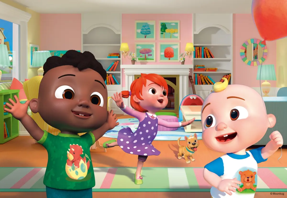 Två pussel på 12 bitar vardera, med olika motiv från YouTube-kanalen CoComelon.