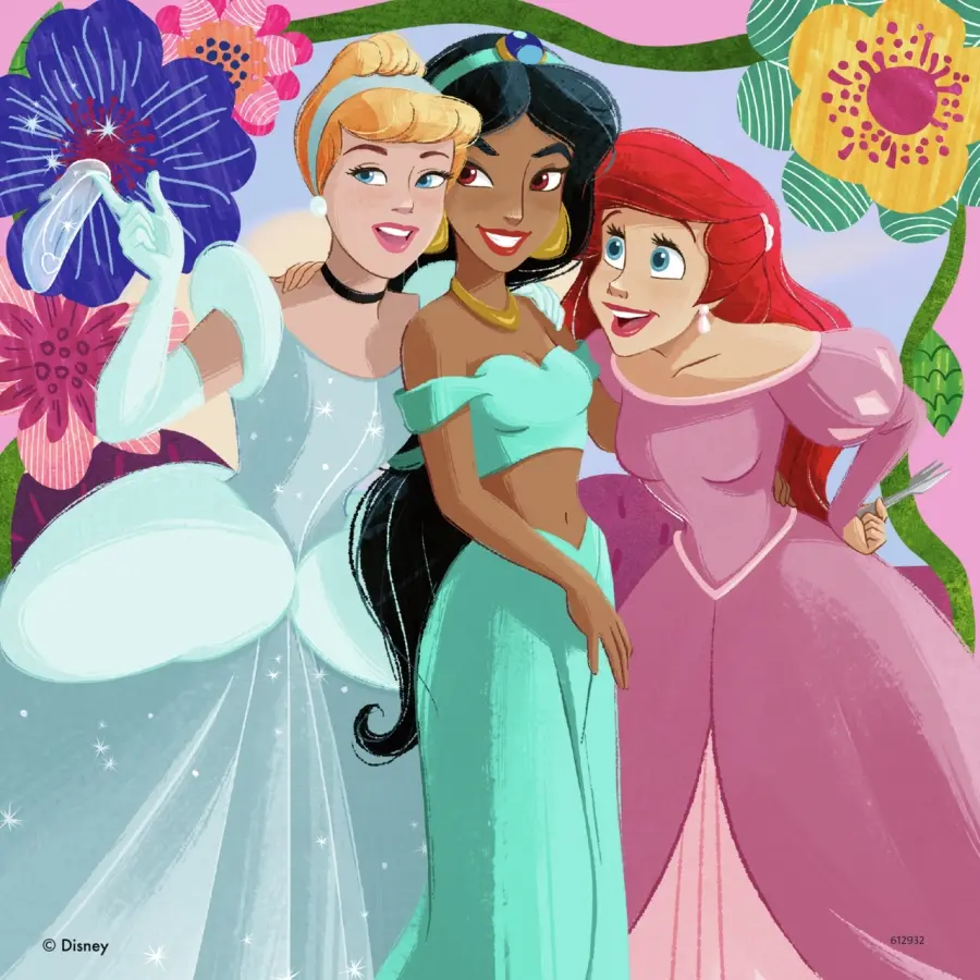 Tre pussel på 49 bitar vardera, med olika motiv av Disneys prinsessor.
