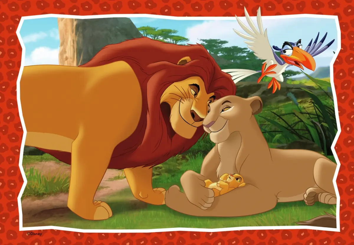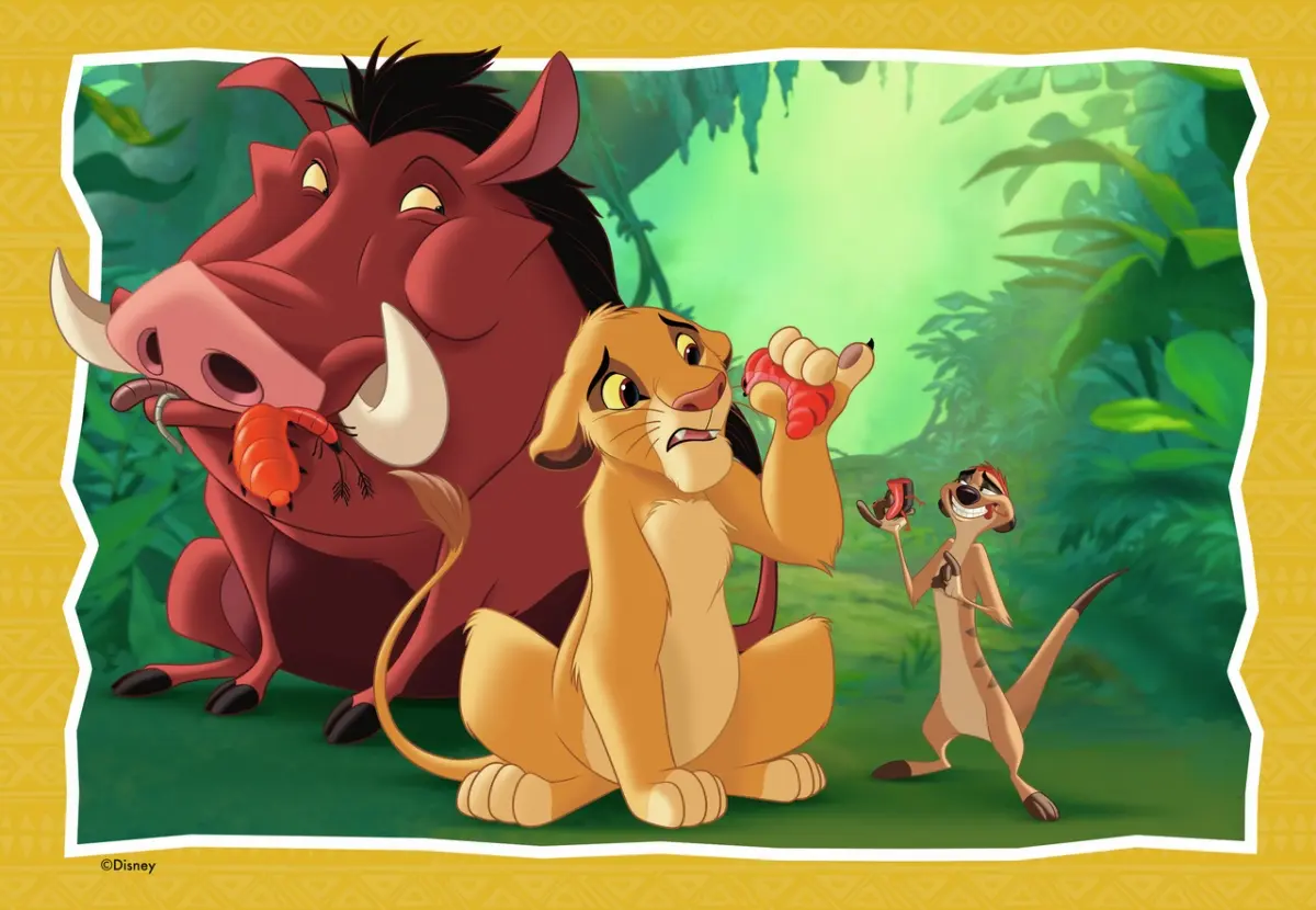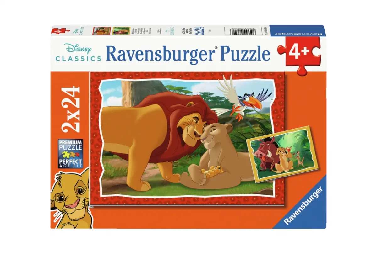 Två pussel på 24 bitar vardera, med olika motiv ur Disney-favoriten Lejon Kungen.