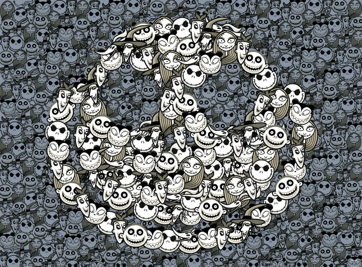 Ett skrämmande pusselmotiv med karaktärerna i Tim Burtons film "The Nightmare Before Christmas".