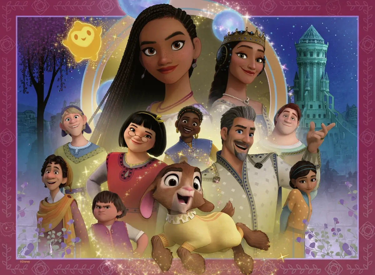 Pusselmotiv med olika karaktärer från Disneys animerade film Önskan (Wish).