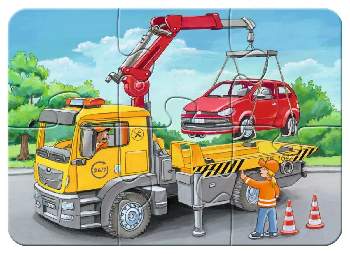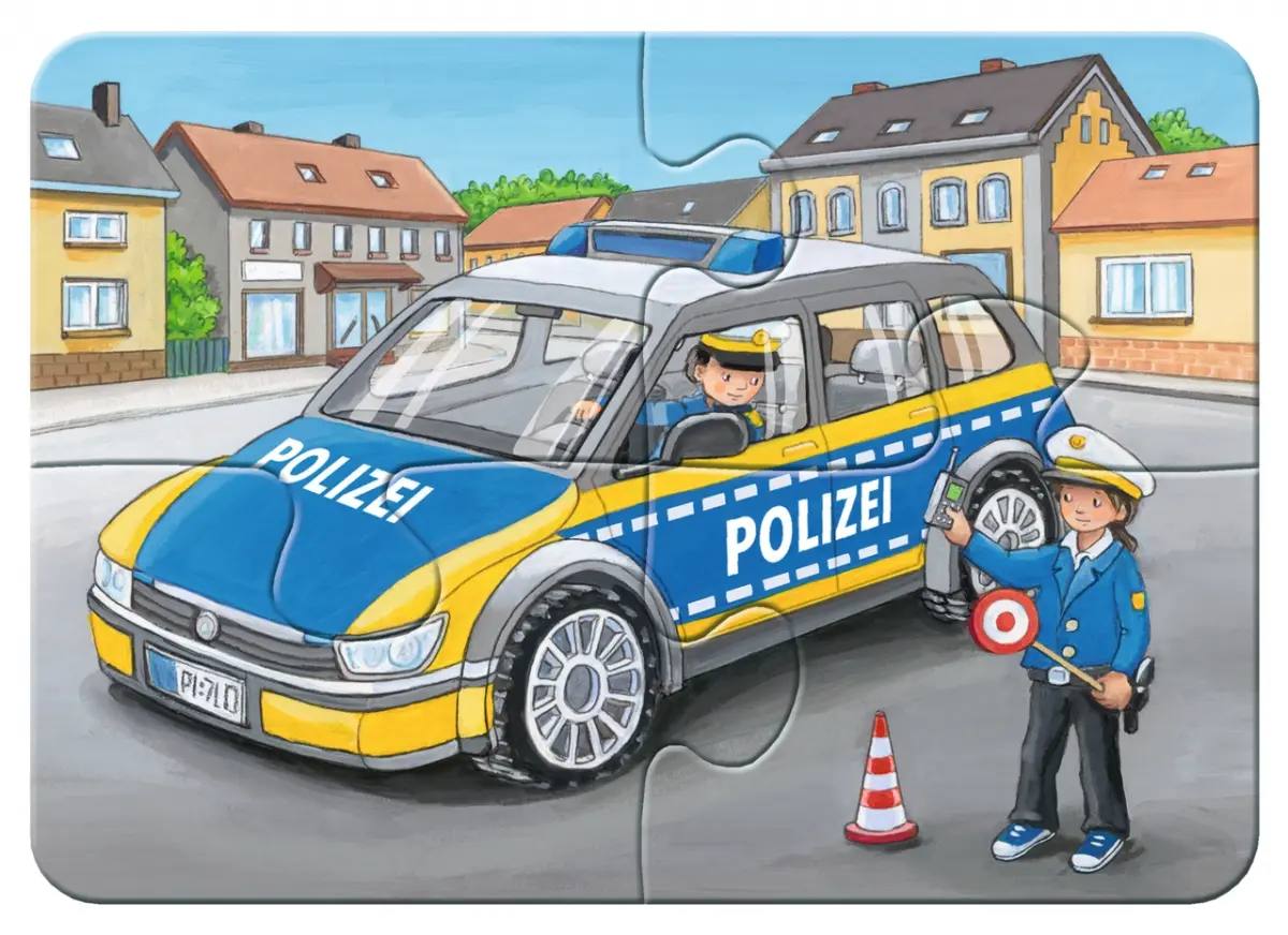 Fyra olika pussel på 2, 4, 6 och 8 bitar vardera. Samtliga med olika motiv av utryckningsfordon. En rolig utmaning för små pusslare där man kan öka antalet bitar när man behöver en ny lite svårare pusselutmaning.