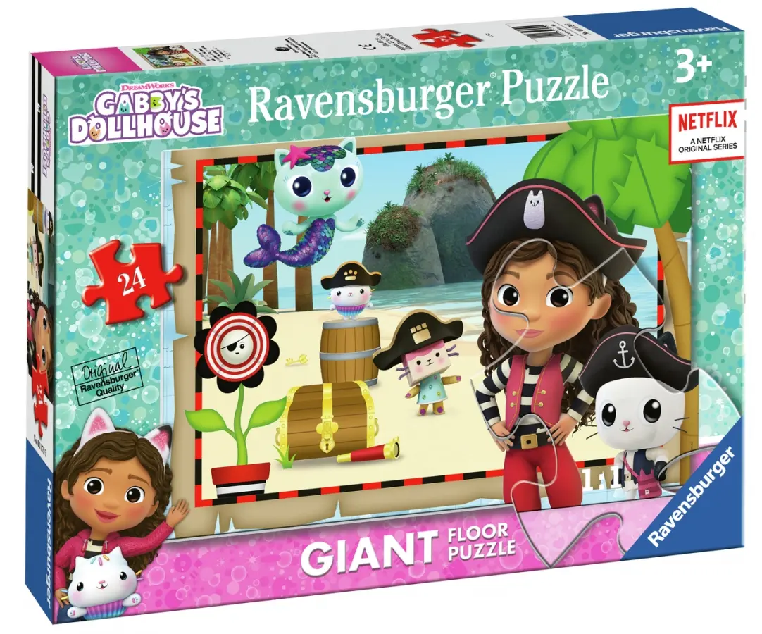 Nyp dig i örat och stå helt still....bli liten och följ med Gabby in i katternas dockhus! Idag är Gabby och hennes vänner pirater på jakt efter gömda skatter. Gabbys dockskåp är en tecknad barnserie producerad av Netflix.