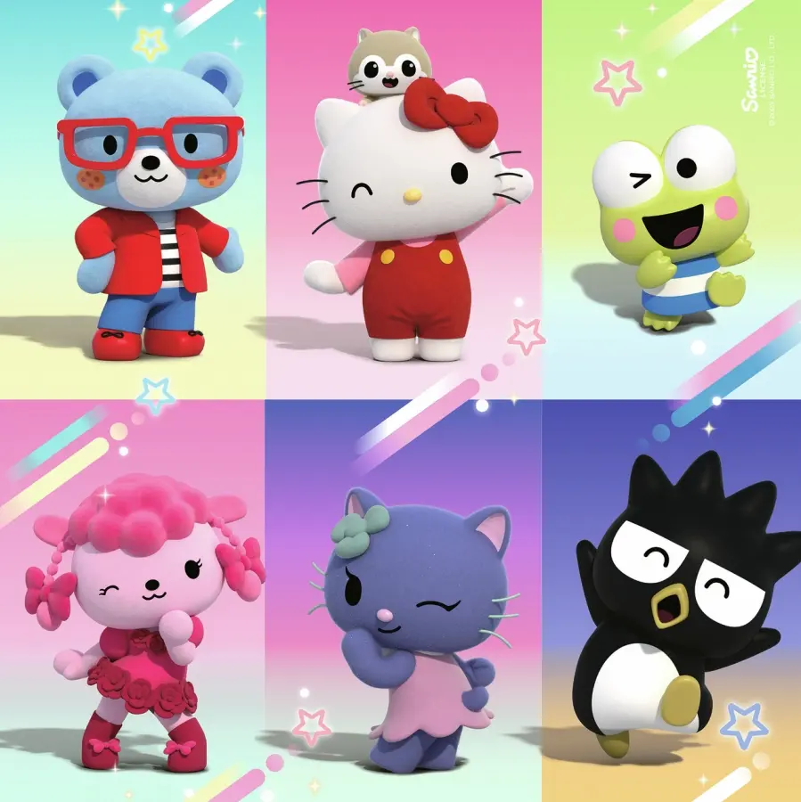 Tre pussel på 49 bitar vardera, med olika motiv av Hello Kitty och hennes vänner i Cherry Town.
