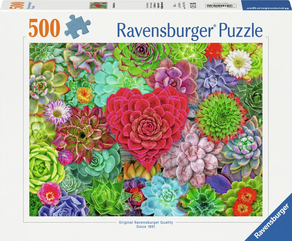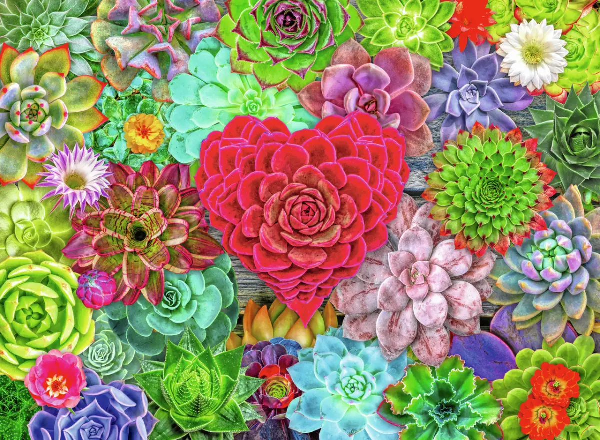 Ett gäng vackra fetbladiga växter har ordnats i en fin formation med ett hjärta i centrum.