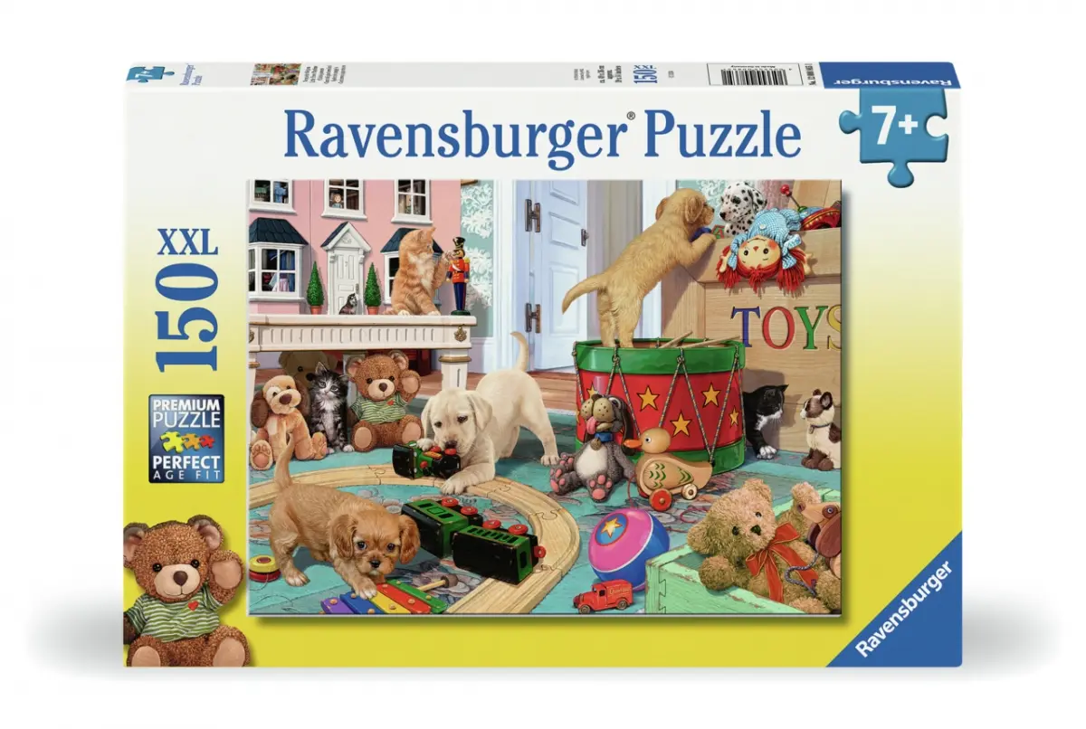 Lekdags! I barnrummet finns det massor av spännande leksaker att utforska för familjens små fyrbenta vänner. Kattungarna och hundvalparna leker sida vid sida och prövar leksakerna både med tassar och nosar.