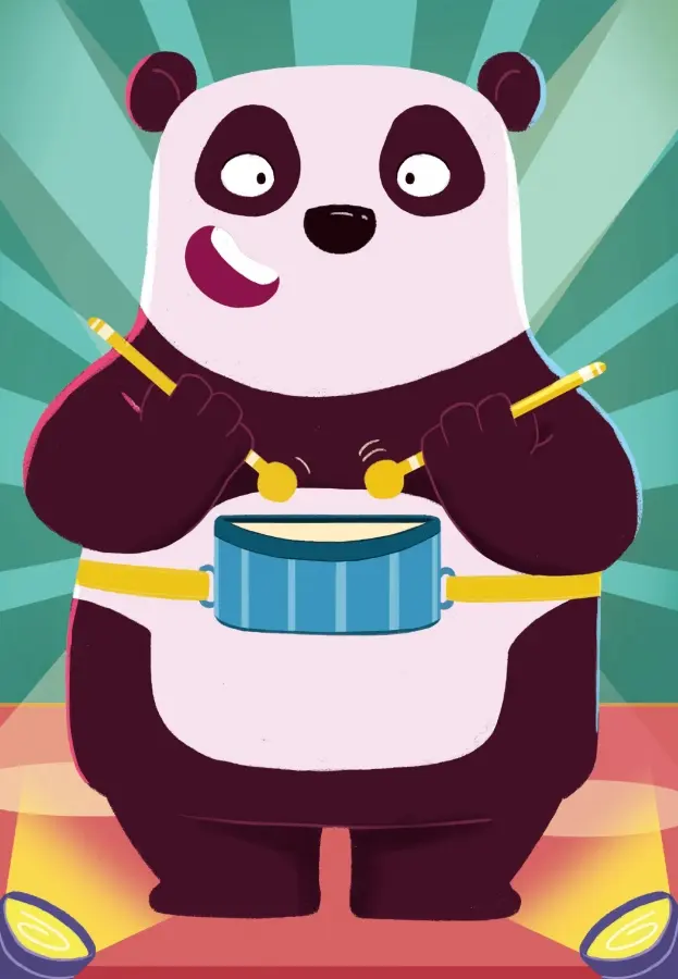 Tre pusselmotiv på djur med instrument. En panda som spelar på trumma, elefant med maracas och en pingvin med sin keytar!