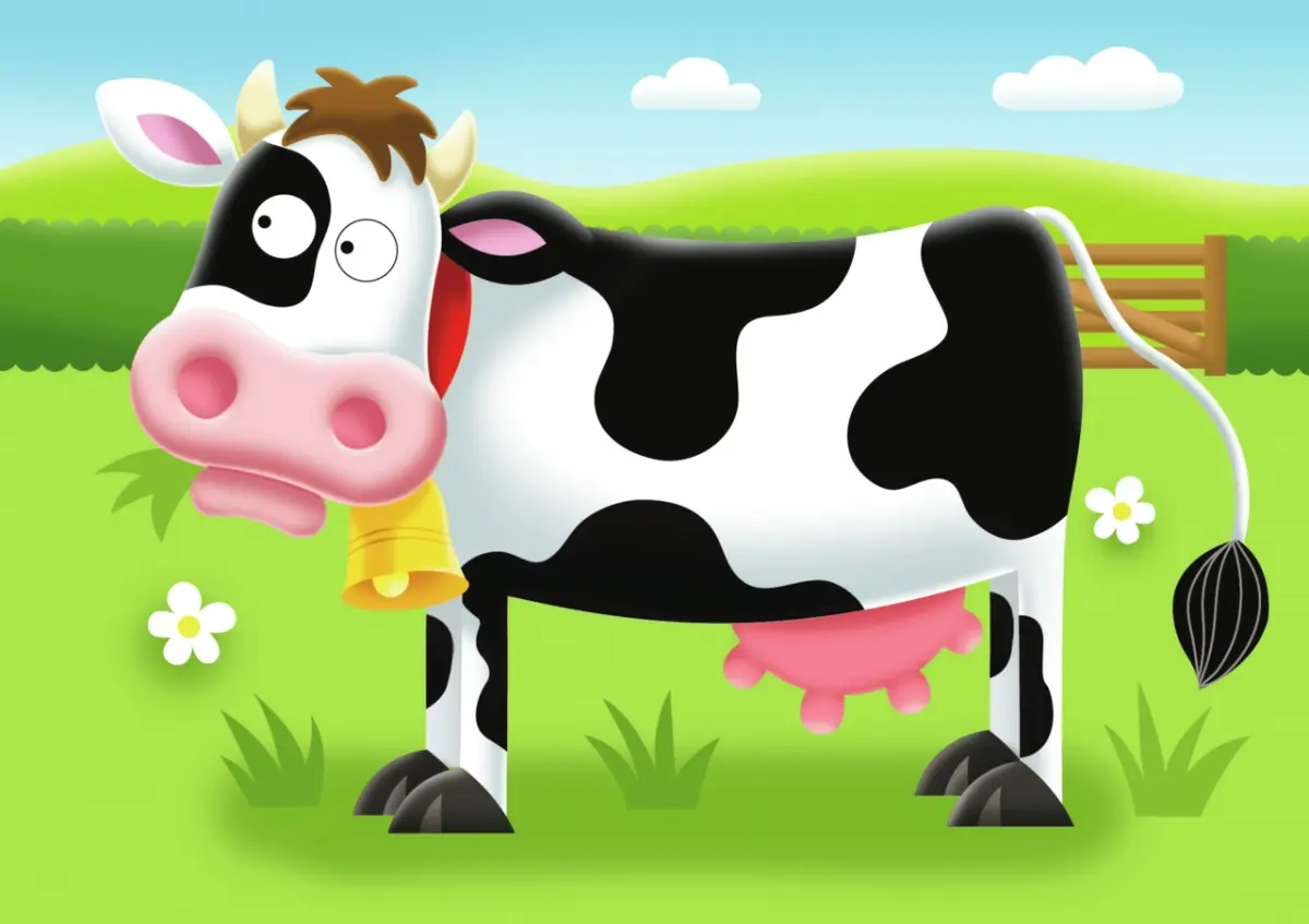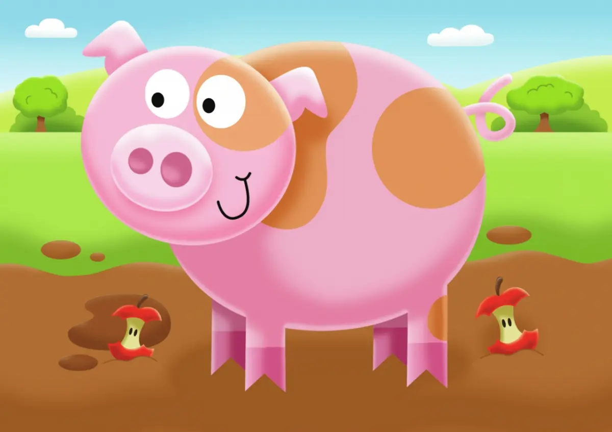 Fyra pussel på 2, 3, 4 och 5 bitar. Samtliga med olika djurmotiv. Vi ser en gris, en ko, en höna och ett får.