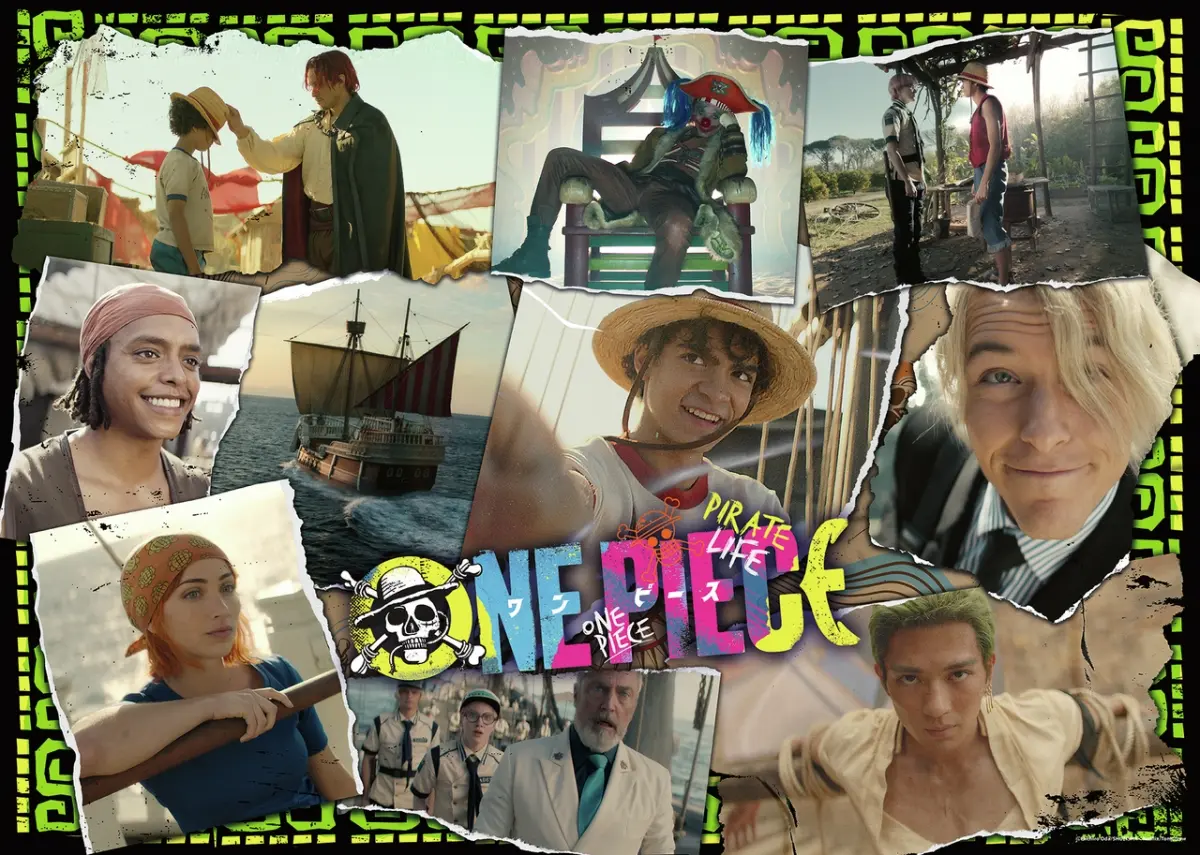 Ett härligt kollage av bilder från Netflix serie "One Piece", en amerikansk action- och äventyrskomediserie från 2023. Serien är skapad av Matt Owens och Steven Maeda och är baserad på den japanska mangaserien med samma namn skapad av Eiichiro Oda. Ett perfekt pusselmotiv för alla One Piece fans där ute!