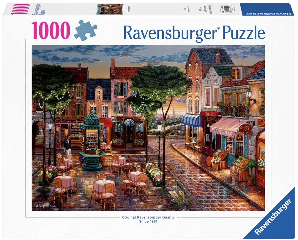 På ett pittoreskt litet torg i Paris är borden uppdukade och kyparen står redo att ta kvällens första beställning. träden är vackert upplysta av ljusslingor och ännu är flera av de små butikerna vid torget öppna. I bakgrunden syns skymtar av Seine flyta fram och såklart stadens mest kända landmärke, Eiffeltornet som tornar upp sig mot en varmt strålande solnedgång.